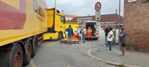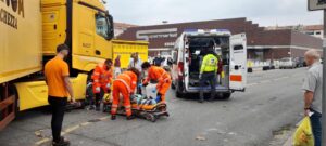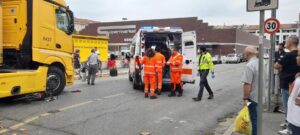 ORE 9.50 – Intervento in corso di Polizia municipale e soccorritori all’incrocio tra spalto Gamondio e via Montebello della Battaglia: un ciclista è stato investito da un camion diretto al vicino supermercato.