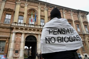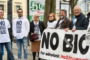 ALESSANDRIA – Oggi, mentre in Provincia si sta tenendo un incontro tra il presidente Enrico Bussalino e alcuni esponenti della giunta valenzana sui temi dell’ipotesi di realizzazione di un impianto per la produzione di biometano, una delegazione del comitato ‘No biogas a Valenza‘ si è ritrovata davanti a Palazzo Ghilini per manifestare, ancora una volta, come accade settimanalmente con i gazebo in città, la propria ferma contrarietà.
