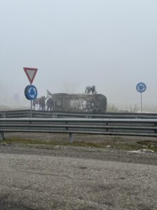 ORE 10.35 – Incidente stradale tra un’ambulanza e un autobus alla rotatoria di San Michele, proprio nei pressi del casello di Alessandria Ovest. Dopo l’impatto il mezzo di soccorso si è ribaltato.