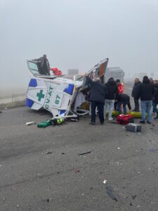 ORE 11.02 – La Croce Verde di Asti stava svolgendo un trasporto ordinario verso l’ospedale diu Alessandria. Nello scontro sono rimaste coinvolte 3 delle 5 persone presenti sul mezzo di soccorso: un uomo di 63 anni, una donna di 29 e un altro uomo di 67. Tutti trasportati in codice giallo al Pronto soccorso dell’Aou Al.