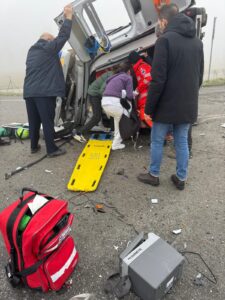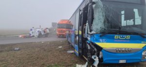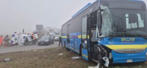ALESSANDRIA – ORE 11.15 – Si sta ricostruendo in questi momenti la dinamica dell’incidente che ha coinvolto il bus e un mezzo di soccorso. Sarebbe stata la corriera, alla fine del tratto della tangenziale in direzione del casello dell’autostrada di San Michele, a tamponare violentemente l’ambulanza della Croce Verde di Asti. A seguito dell’impatto il bus ha proseguito la sua corsa, fermandosi all’interno della rotonda. Mentre l’ambulanza si è rovesciata.