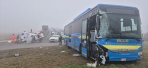 Bus tampona ambulanza a San Michele: tre persone al Pronto soccorso