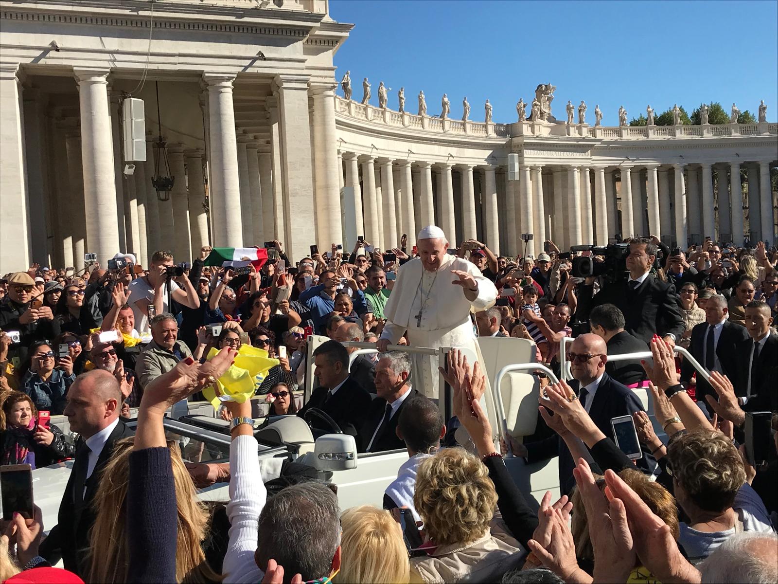 La mattinata degli alessandrini era cominciata alle 6.30, perché l’ingresso in piazza San Pietro prevede il disbrigo di molte formalità (per questioni di sicurezza). Bergoglio ha fatto ingresso con la consueta “Papa mobile”, prima di incontrare le delegazioni ospiti, tra cui la nostra, accompagnata in piazza da molti fedeli, giunti a Roma in pullman o con mezzo propri.