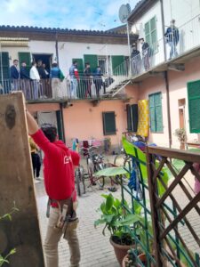Nel comunicato si descrivono alcuni momenti dell’intervento. L’arrivo dell’ufficiale giudiziario viene definito concitato: «È arrivato urlando, spaventando la bambina che era presente. Una donna che stava allattando è stata costretta a smettere e ad allontanarsi». I solidali del Movimento per la casa, riferisce il Comitato, «sono stati invitati a scendere dalla casa di ringhiera».